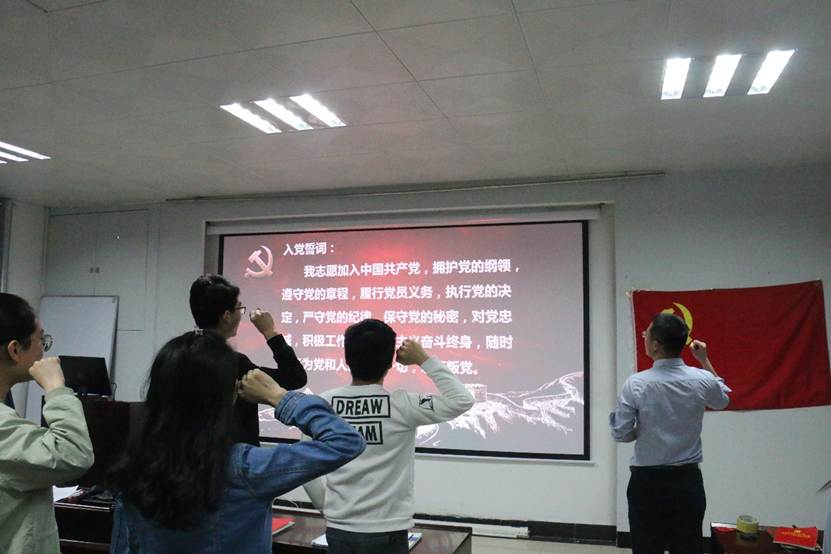 公司员工党建办公室主任余尚蔚老师主持学习,在奏唱国歌之后,他带领大家重温入党誓词并集中学习了党章的部分章节。随后,胡文勤副书记应邀为全体党员传达公司十二次党代会精神,他介绍了公司十二次党代会召开的背景,传达了十二次党代会取得的丰厚成果,着重介绍了公司的“三步走”发展战略。