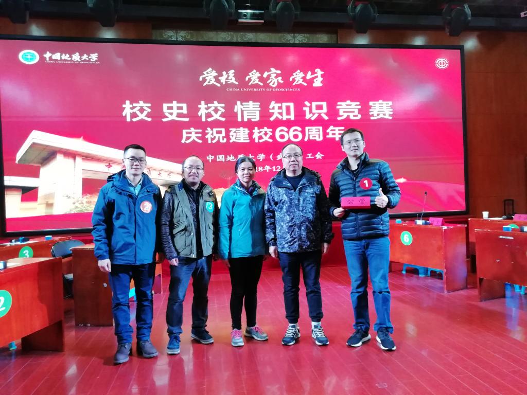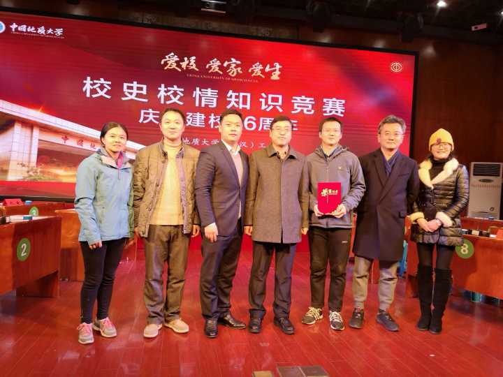 为了引导帮助广大教职工知校史、明校情、促发展,2018年12月4-8日,中国地质大学以“爱校 爱家 爱生”为主题的教职工“校史校情知识竞赛”比赛在教工活动中心一楼综合厅隆重举行。参与此次活动的教职工队伍共23支。304am永利集团姜炜、余尚蔚、杨剩富、张绪冰、宋冬冬和彭红霞老师在领队张吉军书记的带领下代表公司分工会参加比赛。