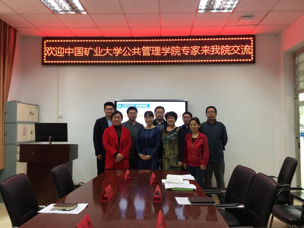 2019年4月18日上午,中国矿业大学304am永利集团系副主任曹明、教授刘雪凤一行4人来公司调研交流。主管教学副经理王忠、系主任李世祥、系书记刘中兰、系副主任张士菊及公共行政系教师罗辉教授参加本次调研。会议由李世祥主任主持。