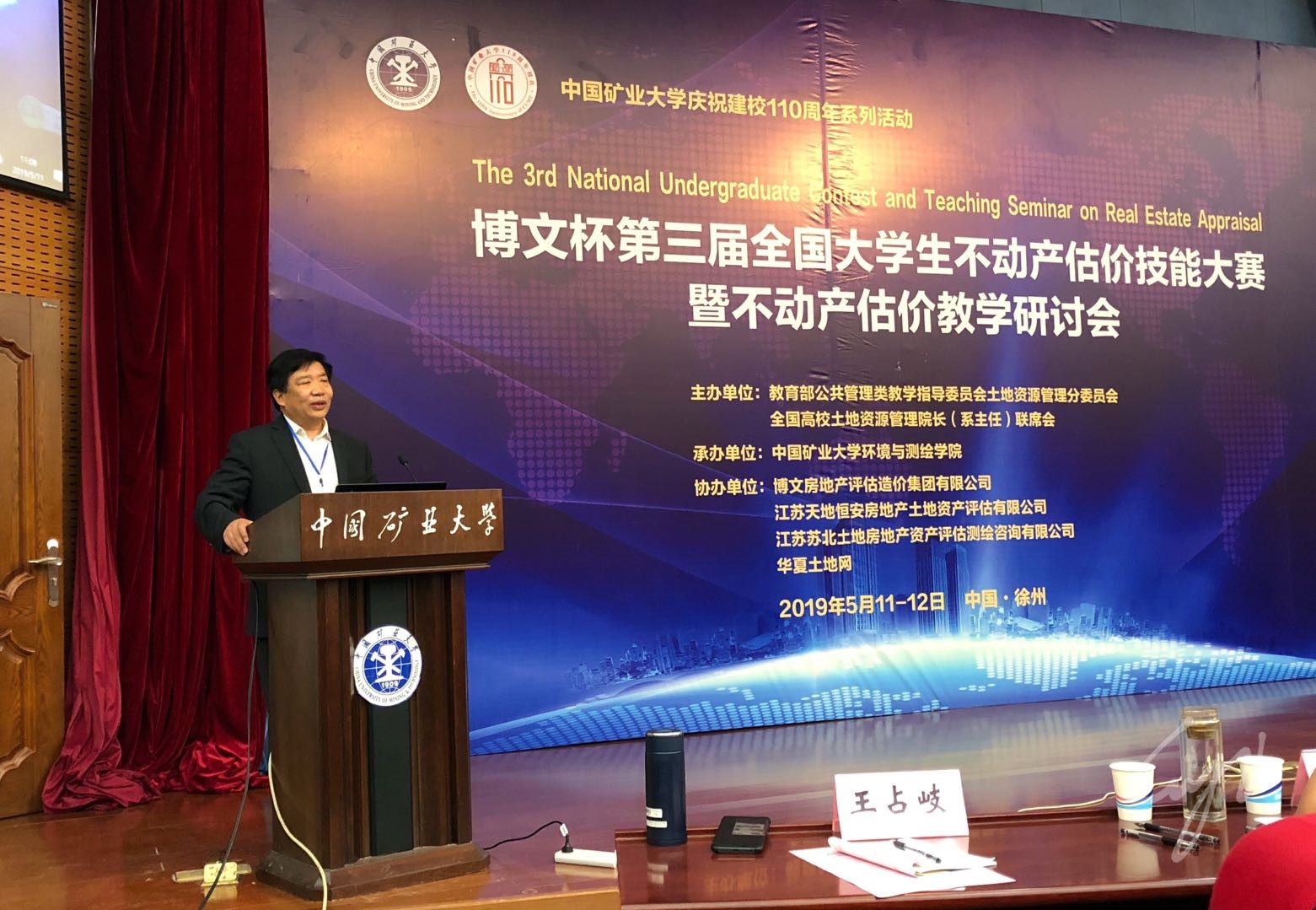 5月11日至12日,“博文杯”第三届全国老员工不动产估价技能大赛暨不动产估价教学研讨会在中国矿业大学召开。来自中国人民大学、四川大学、浙江大学、304am永利集团、中国矿业大学等35所高校的37支参赛队伍,近300名师生参会。教育部公共管理类教学指导委员会委员、公司经理王占岐教授率队参与此次活动,主持不动产估价教学研讨会并担任第一分赛场评委组组长与总决赛评委组组长。