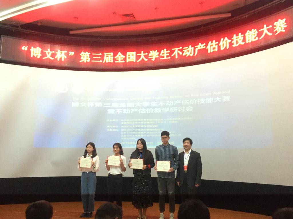 本届全国老员工不动产估价技能大赛现场参赛队伍共有37支,其参赛作品均为经专家外审后在全国范围内遴选的优秀作品,由公司龚健教授指导,土地资源管理专业本科生韩正康、欧嘉婵、管晨悦、刘沛辰团队的参赛作品位列其中。经过激烈角逐,首次参加此类大赛的公司代表队提交的作品“鄂州市梧桐湖新区东沟镇鲊州村(2015)010号集体经营性建设用地(工业用地)、(2018)016号集体经营性建设用地(居住用地)土地使用权价值评估”荣获三等奖,为提升公司老员工不动产估价实践技能积累了宝贵经验。