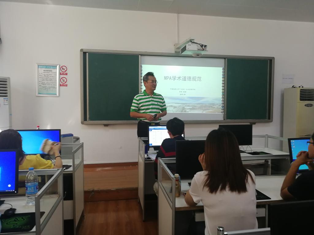 在入学教育环节,院工会主席曾伟教授就MPA学术道德规范问题为2019级新学员们开展了一场别开生面的讲座。首先,曾伟教授高度评价、认可同学们的学习精神、学习热情,叮嘱同学们要珍惜本次的求学机会,严格按照学校MPA的办学要求,认真上课并顺利通过课程考核,完成培养方案规定的学分,在导师的指导下顺利完成开题、答辩等毕业环节。然后,曾伟教授着重强调,同学们要做学术研究首先要学会遵守学术规范,严守原创、真实、遵守版权的学术道德底线。他跟同学们列举了在当前学术界被严禁的学术不端行为和表现,并结合“翟天临”事件等案例分析了学术道德在研究生教育中的主要地位和影响。曾教授的讲座给2019级MPA新学员们上了宝贵“开学第一课”。