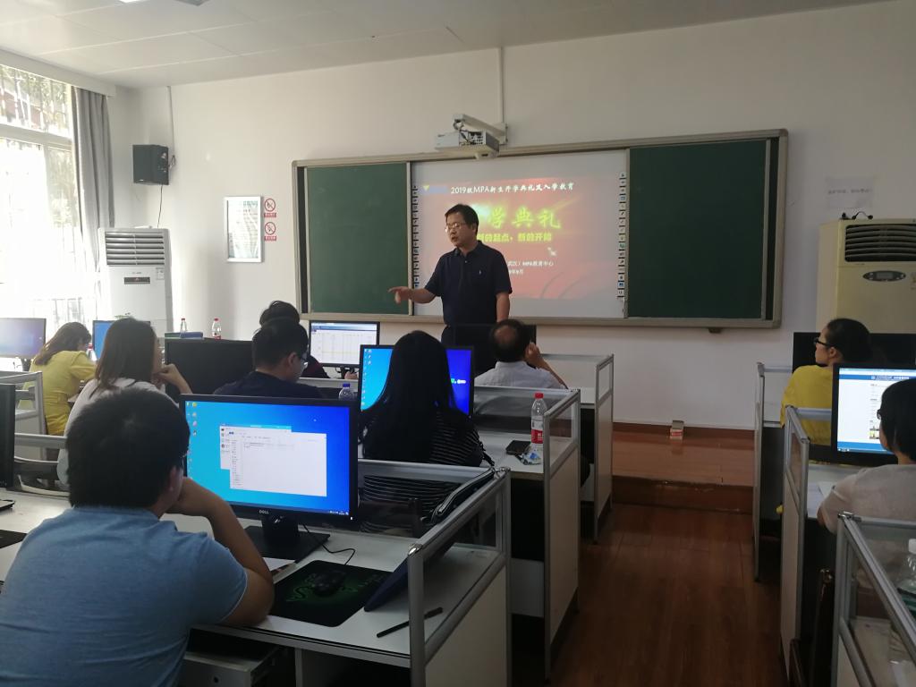 (MPA教育中心通讯员:马雪妮)丹枫迎秋,天高气爽,2019年9月21日,MPA教育中心举办了2019级MPA新生(周末班)开学典礼及入学教育。公共管理公司党委书记张吉军教授、分管MPA教育和本科生教学工作的副经理王忠副教授、工会主席曾伟教授以及MPA教育中心办公室蒲明强、李继杰老师、2019级MPA(周末班)新学员们出席了开学典礼。