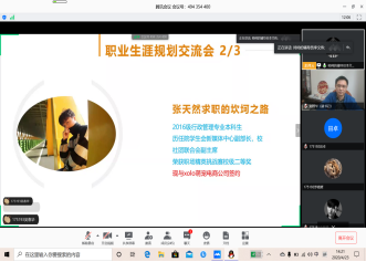 张天然学长目标明确,勇于尝试,他分享了自己的求职经历,在大三上学期便坚定了自己求职的想法,随后便参加了公司的双选会,在经过一次次的实习以及与大公司之间的交流、互动之后,明白了真正适合自己的岗位是什么,最终选择签约一家电商公司,在每天的工作中不断发掘自身的价值。张天然学长建议学弟学妹们不要急于求成,在循序渐进的过程中不断磨砺自己,最终选择适合自己