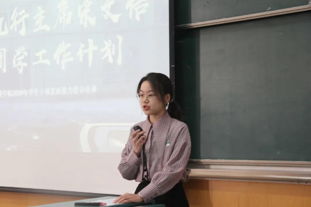 接下来,2020-2021届员工会执行主席宋文恬汇报了团学工作计划,并表示会不断改革、完善、落实各种规章制度;加强与各个组织、社团、校级员工会以武大等华中六校公管公司的交流,并加强校级活动的举办。