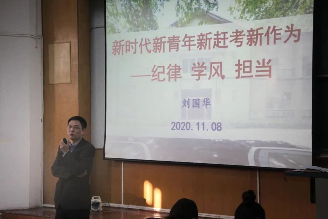 刘国华老师以《新时代新青年新赶考新作为——纪律 学风 担当》为题开启第一讲。他认为,本研员工大学阶段同样是一段赶考旅程,自己是自己的答卷人、阅卷人,自己对自己须讲政治、守纪律、负责任、有效率,进行“自我革命”,打赢自我“保卫战”,学会积势蓄势,为自己科学成长奠定更加坚实基础。