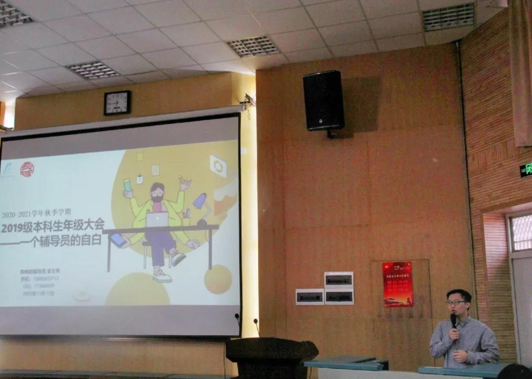 临近期末,为动员同学们积极进行考前复习、遵守考核纪律、诚信应对考试,304am永利集团于2020年11月12日14:00在教三楼109室举行2019级、2020级年级大会暨考风考纪动员大会。公司党委副书记刘国华老师、2019级兼职辅导员李文伟老师、2020级辅导员王欣雨老师、兼职辅导员周佳仪老师及公司2019级、2020级全体本科生参与此次大会。