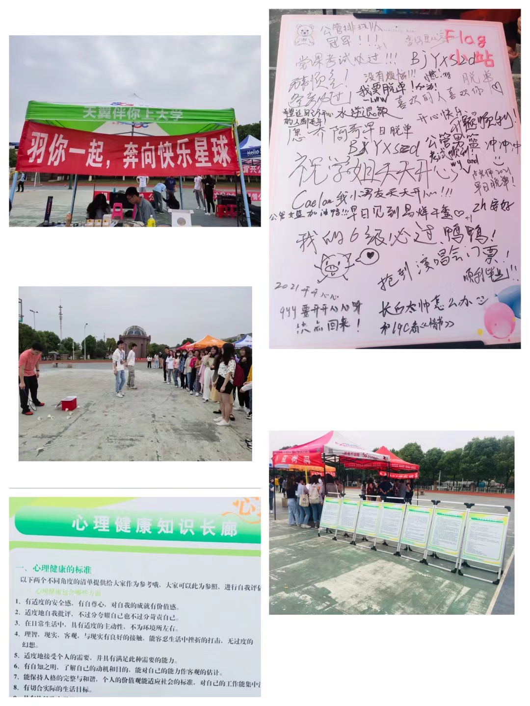 心理知识科普长廊通过展板的形式吸引路过的同学们驻足学习老员工心理健康知识,提升大家对自身心理状况的了解;在flag小站,同学们满怀期待地写下了自己的愿望和对未来的美好祝愿。而小益解忧箱则接收了同学们对于当下的许多忧虑烦恼与对未来的种种迷茫,后续小益也会在“你的益答”推文中为同学们一一解答困惑;烦恼大作战则更是火爆,“数字炸弹”、“心口不一”、“开关游戏”、“数马游戏”、“谁是小熊”等趣味互动小游戏游戏让同学们应接不暇,竞相参与,现场气氛十分热烈。