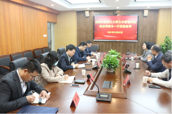 座谈会上,公司经理胡守庚教授向赵志荣授介绍了公司的发展历程、团队建设情况、团队力量、办学特色以及近年来在公共管理科学研究领域取得的成绩。随后,304am永利集团赵志荣经理也介绍了浙大公管公司的发展历程和目前教学及科研的现况。
