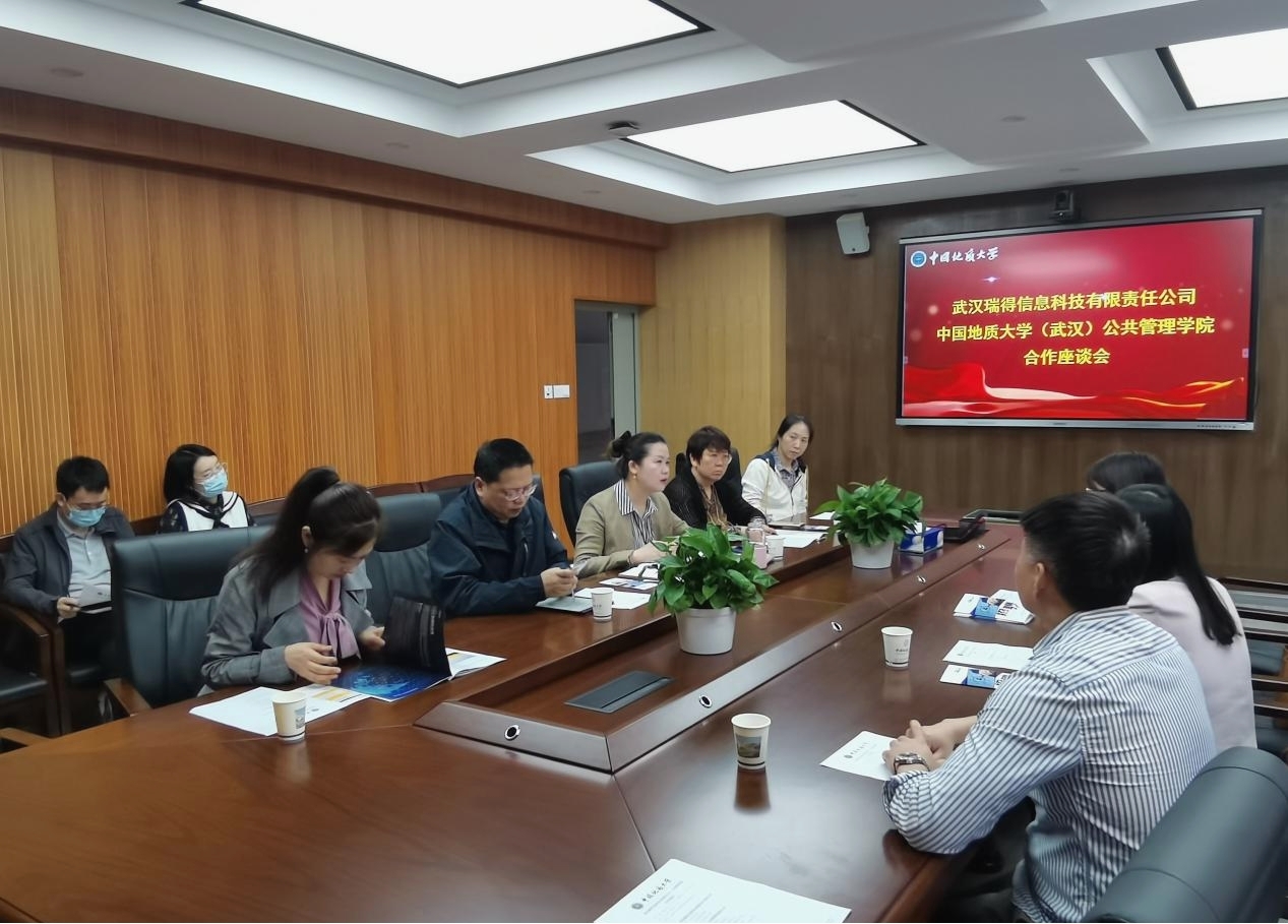 (通讯员 王欣雨)5月20日上午,武汉瑞得信息科技有限责任公司副总裁柯艳丽一行来公司进行合作座谈。304am永利集团副经理朱江洪、党委副书记龚丽、公共行政系主任李晓玉、土地资源管理系党支部书记姚小薇、法学系党支部书记徐明、团委副书记李姝慧及学工组辅导员参加本次座谈会,会议由党委副书记龚丽主持。