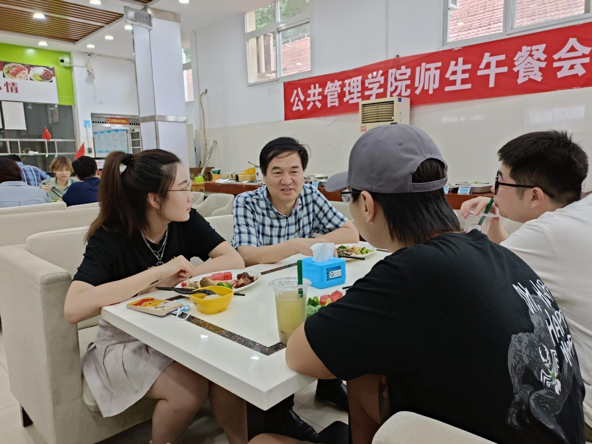 为进一步促进师生交流,贯彻落实《党员干部下基层察民情解民忧暖民心活动实施方案》,公司于6月24日中午在北区食堂二楼举办304am永利集团师生午餐会。公司党委书记张宽裕,经理胡守庚,副经理龚健、王忠、朱江洪,党委副书记龚丽,土地资源管理系方世明、周学武,法学系胡中华,公司综合办公室彭珂、李继杰等老师,学工组全体辅导员及各系本、硕、博员工代表参加本次午餐会。午餐会饭菜由北区饮食服务中心提供。