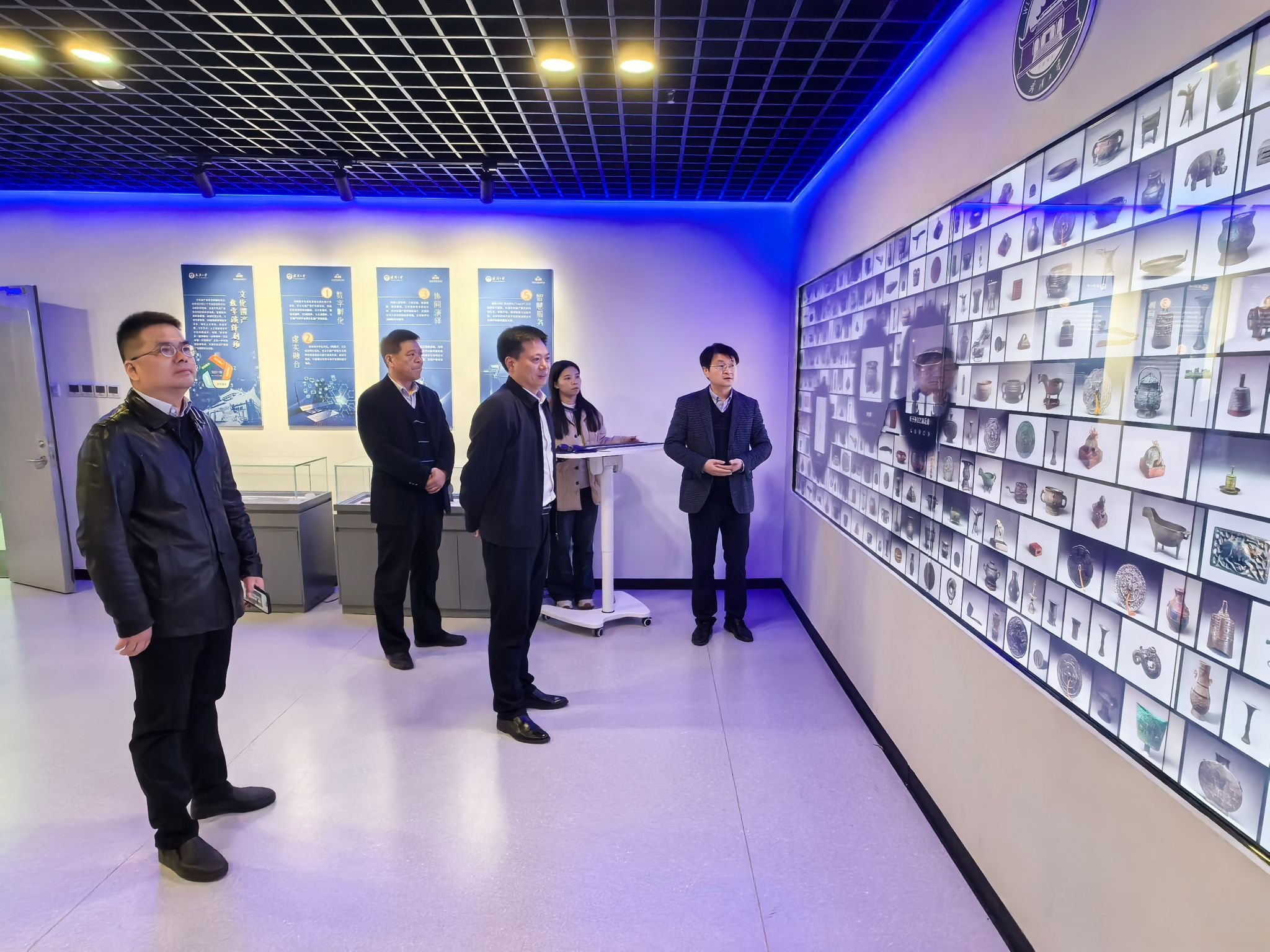 胡守庚一行参观了文化遗产智能计算实验室的建设情况,详细了解实验室建设背景、建设过程和实际运行情况,体验文化遗产的智能计算场景,深入交流大数据、人工智能与哲学社会科学交叉融合创新的思路与举措。