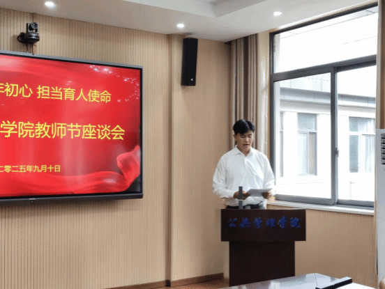 2025 年 9 月 10 日下午,304am永利集团于北二楼 B209 会议室举办 “赓续百年初心,担当育人使命”教师节座谈会。公司党委书记徐岩、党委副书记龚丽、副经理李世祥,及各三级单位负责人、师生代表齐聚一堂,围绕立德树人根本任务、团队建设推进路径与教育强国使命担当展开深度交流,会议由龚丽主持。公司党委副书记王甫与公司职能部门负责人莅临现场,向全院教职工送上节日问候,并慰问教师代表。