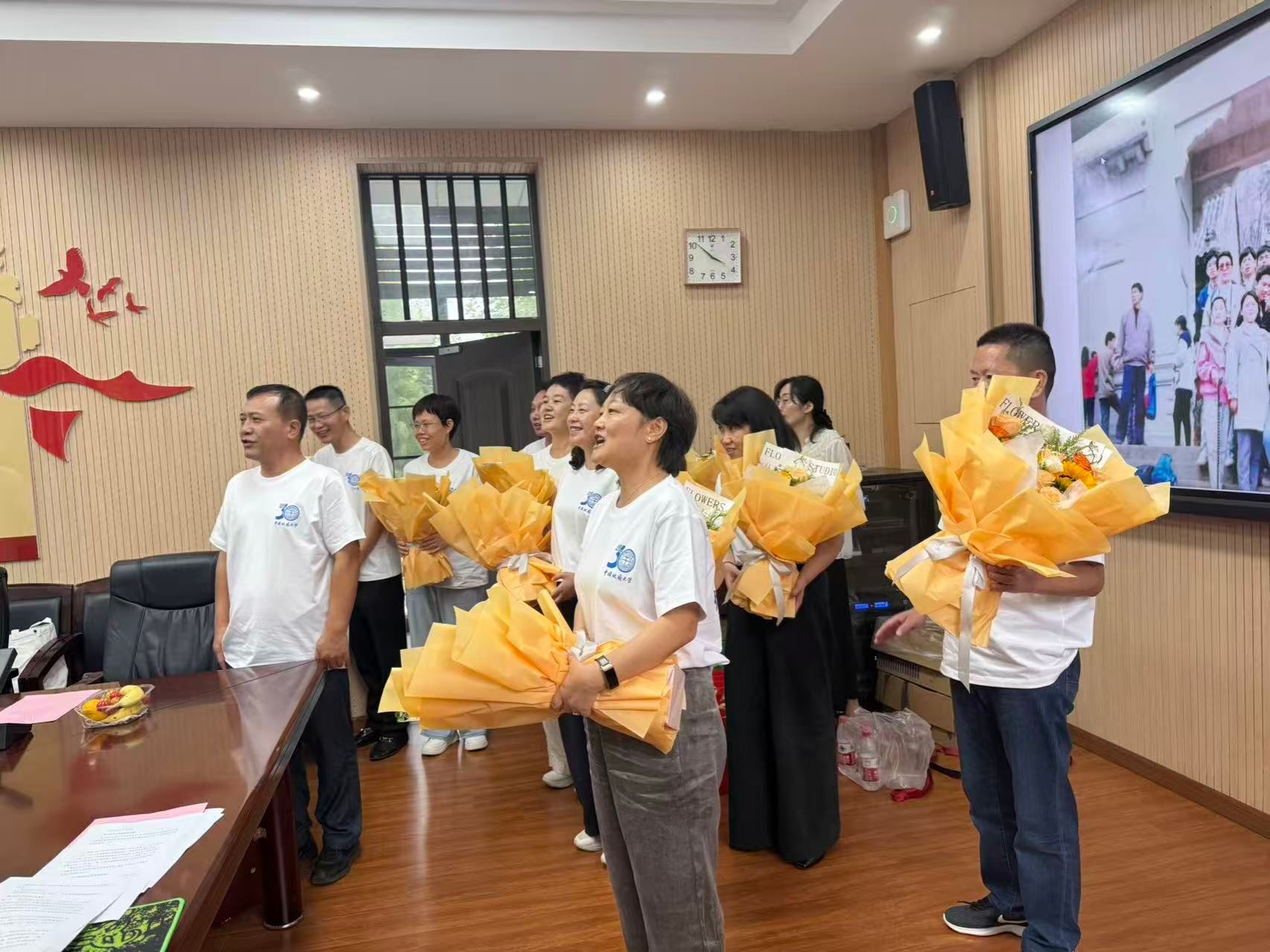 10月2日下午,1995届现代文秘与公共关系专业208931、208932班员工和2005届土地资源管理专业023011、023012班员工在公司举行师生座谈会。公司党委书记徐岩,经理龚健,党委副书记龚丽,副经理朱江洪,公司老领导、原班级班主任、授课教师代表、各系领导参加座谈会。